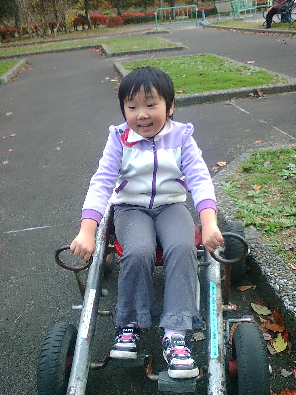 長女が初体験であるにもかかわらず、小学生用の足こぎカートで、350mくらいのコースを一周したのには驚きました。もちろん、私も少し補助はしましたが、ほとんど自分で操作できました。